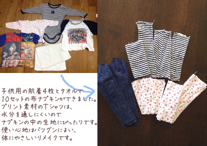 古くなった肌着やカットソー、地球にも体にもにやさしい布ナプキンがつくれます。